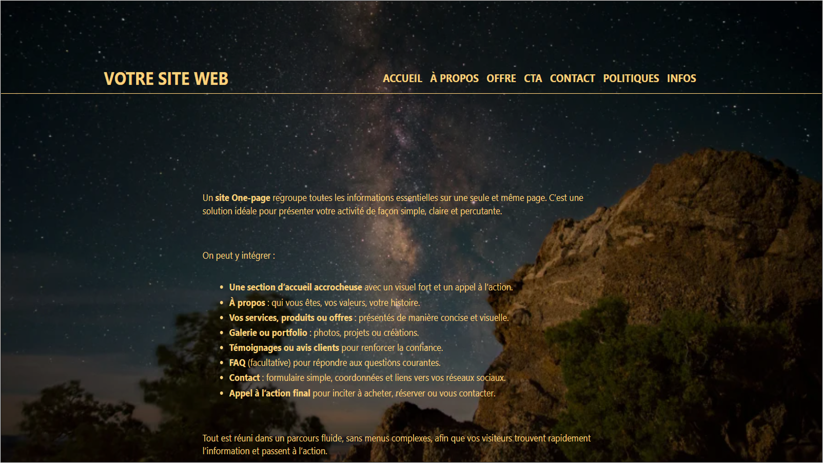 Votre site en une page – Simple, impactant, prêt à l’emploi